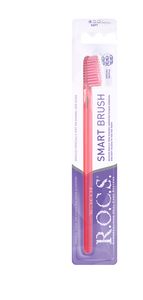 Уникальная форма головки зубной щетки R.O.C.S. — скошенная к концу головки щётки подстрижка щетины — повышает качество чистки поверхности зубов и позволяет с легкостью проникать в труднодоступные участки зубного ряда, а так же качественно очищать пространство между зубами, не повреждая десны. Тонкая плоская прозрачная ручка обеспечивает необычайную маневренность на всех участках зубного ряда.Зубная щётка R.O.C.S. классическая (гладкая подстрижка).Ровная форма подстрижки увеличивает рабочую поверхность, обеспечивая максимальный контакт со всеми участками поверхности зуба и качественное удаление зубного налета. Щетинки на конце головки укорочены, что дает возможность качественной очистки «дальних зубов» (ретромолярная область). Волокно щетины производства фирмы «Pedex» (Германия) – мирового лидера в производстве высококачественных материалов. Кончик каждой щетинки закруглен и тщательно отполирован. Высококачественная щетина не повреждает эмаль зубов, не царапает зубные реставрации и не травмирует десны.Три уровня жесткости щетины: мягкая, средняя, жесткая.Множество вариантов комбинации цвета ручки и щетины позволяют выбрать лучшую щетку подчеркивающую ваше настроение и индивидуальностьВыберите зубную щетку R.O.C.S., которая подойдет именно Вам!Свойства компонентовУникальная форма подстрижки головки зубной щетки — скошенная к концу головки обеспечивает легкий доступ для чистки поверхностей дальних зубов.Уникальная тройная полировка кончиков щетинки обеспечивают быстрое, качественное и безопасное очищение не повреждая эмаль.