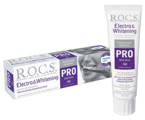Зубная паста R.O.C.S. PRO Electro & WhiteningДля использования с электрическими зубными щеткамиМеханизм действияСекрет уникальной технологии Sоnicare заключается в встроенном в щетку генераторе, вырабатывающем звуковые волны и приводящем щетинки в движение. Они совершают до 31 000 выметающих колебаний в минуту и направляют динамический поток жидкости таким образом, что создается ирригационный эффект: Налёт вымывается из труднодоступных участков: между зубами, вдоль дёсен и с поверхности задних зубов. Щетка совершает мягкий массаж десен, обеспечивая комплексный уход за полостью рта. Клинически доказано, что электрические щетки Philips безопасны для эмали и десен и на 50% аккуратнее воздействуют на ткани зуба по сравнению с обычной щеткой ***, не оказывая избыточного давления.*Подтверждено клиническими исследованиями.**Уникальность формул подтверждена патентами и патентными заявками.Свойства компонентовБромелаин — фермент растительного происхождения бережно растворяет зубной налет. Ксилит защищает от бактерий, вызывающих кариес. Кальций укрепляет эмаль, возвращает ей естественную белизну. Уникальный неабразивный комплекс очищает, осветляет и полирует эмаль зубов.