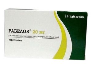 Показания к применениюЯзвенная болезнь желудка и двенадцатиперстной кишки в фазе обострения; язвенная болезнь желудка и двенадцатиперстной кишки, ассоциированная с Helicobacter pylori (в комбинации с антибиотиками); гастроэзофагеальный рефлюкс.Применение при беременности и кормлении грудьюРабепразол противопоказан к применению при беременности и в период лактации.;В экспериментальных исследованиях установлено, что рабепразол в незначительных количествах проникает через плацентарный барьер, однако не отмечено нарушений фертильности или дефектов развития плода; выделяется с молоком лактирующих крыс.;Клинический опыт применения рабепразола у детей отсутствует, поэтому применение не рекомендуется.ПротивопоказанияБеременность, период лактации (грудное вскармливание), повышенная чувствительность к рабепразолу натрия или замещенным бензимидазолам.Побочное действиеСо стороны пищеварительной системы: диарея, тошнота, боли в животе, рвота, метеоризм, запор; редко — сухость во рту, диспепсия, отрыжка; в единичных случаях — анорексия, гастрит, стоматит, повышение активности печеночных трансаминаз.;Со стороны ЦНС и периферической нервной системы: головная боль, астения, головокружение, бессонница; редко — нервозность, сонливость; в единичных случаях — депрессия, нарушения зрения и вкусовых ощущений.;Со стороны дыхательной системы: возможны — ринит, фарингит, кашель; редко — синусит, бронхит.;Аллергические реакции: редко — кожная сыпь; в единичных случаях — зуд.;Прочие: боли в спине, гриппоподобный синдром; редко — миалгия, боль в груди, озноб, судороги икроножных мышц, инфекция мочевыводящих путей, артралгия, лихорадка; в единичных случаях — увеличение массы тела, усиление потоотделения, лейкоцитоз.СоставРабепразол натрия 20 мг;Вспомогательные вещества: маннитол — 89 мг, магния оксид — 80 мг, гипромеллоза — 5 мг, целлюлоза микрокристаллическая — 20 мг, крахмал — 20 мг, кармеллоза — 20 мг, тальк — 3 мг, магния стеарат — 6 мг, кремния диоксид коллоидный — 3 мг.;Состав оболочки: гипромеллоза — 9.5 мг, пропиленгликоль — 1.5 мг.;Состав кишечнорастворимой оболочки: сополимер метакриловой- кислоты -и- этилакрилата- (тип С) (1:1) — 13.95 мг, полисорбат 80 — 0.209 мг, дибутилфталат — 2.090 мг, натрия гидроксид — 0.119 мг, краситель железа оксид желтый — 0.783 мг, тальк — 5.63 мг, титана диоксид — 1.210 мг.Взаимодействие с другими препаратамиПри одновременном применении с дигоксином возможно повышение (от небольшой до умеренной) концентрации дигоксина в плазме крови.;При одновременном применении с кетоконазолом уменьшается его биодоступность.