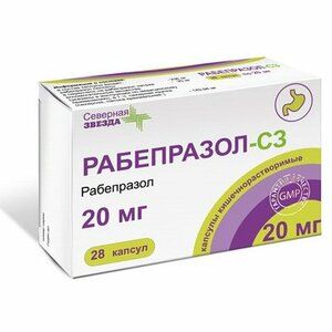 Главная » Аптека Рабепразол-СЗ Капсулы 20 мг 28 шт Просмотров 4 Средство понижающее секрецию желез желудка — протонной помпы ингибитор Северная Звезда