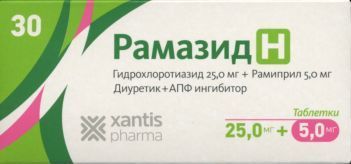 Рамазид H 5 мг+25 мг, 30 шт, таблетки