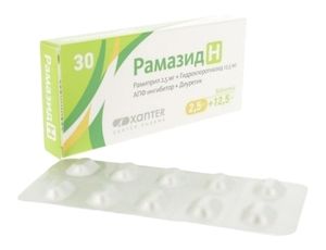 Главная » Аптека Рамазид Н таблетки 2,5 мг + 12,5 мг 30 шт Просмотров 8 Плоские овальные таблетки, белого или почти белого цвета с насечкой с одной стороны и маркировкой «12,5». КСАНТЕР ФАРМА