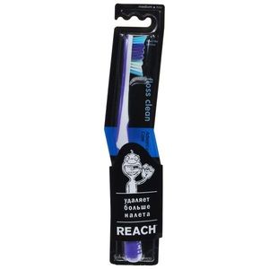 Зубная щетка средней жесткости REACH Floss Clean превосходно очищает все поверхности зубов, а также десны. Специальные тонкие щетинки, которые глубоко проникают в самые узкие межзубные промежутки, помогают удалять больше налета, а благодаря удлиненной щетине на кончике щетка позволяет эффективно очищать даже труднодоступные поверхности зубов.Ручка с резиновой накладкой способствует удобному захвату и препятствует скольжению в руке, обеспечивая максимальный контроль во время чистки.После использования рекомендуется промыть щетку в теплой проточной воде. Хранить в вертикальном положении рабочей частью вверх.