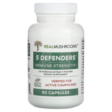 Real Mushrooms, 5 Defenders, для укрепления иммунитета, 90 капсул