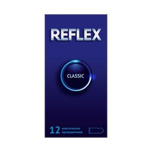 Презервативы из натурального латекса Reflex Classic (Рефлекс Классик) — бесцветные, гладкие, анатомической формы, с накопителем, в силиконовой смазке. Смазка не разрушает сперматозоиды.Характеристики Reflex Classic N12Длина, см 19Ширина, см 5,25Толщина стенки, мм 0,05 — 0,09Цвет БесцветныеТекстура ГладкаяФорма АнатомическаяАромат Без ароматаМатериал Натуральный латексПожалуйста, перед использованием внимательно прочитайте инструкцию на внутренней сторонеупаковки!Презервативы предназначены для использования в качестве барьерного средства контрацепции против нежелательной беременности и предотвращения передачи инфекций, передающихся половым путем (ИППП), включая ВИЧ.Изготовлены из натурального латекса.Проверены электроникой.Качество от Durex: 100% презервативов проверены электроникой (дополнительно проводятся еще 5 тестов на качество для каждой серии), дерматологически протестированы.Только для одноразового использования.Ни один из методов контрацепции не может гарантировать 100% защиты от нежелательной беременности, ВИЧ или иных заболеваний, передающихся половым путем.