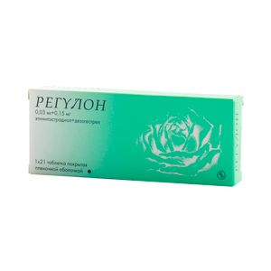 Показания к применениюПероральная контрацепция.Применение при беременности и кормлении грудьюДо начала приема препарата Регулон необходимо исключить беременность. Если у вас наступила беременность, следует немедленно прекратить прием препарата Регулон. Так как действующее вещество препарата Регулон может проникать в грудное молоко и привести к снижению количества молока, не рекомендуется применять Регулон во время грудного вскармливания.Побочное действиеПобочные явления, требующие отмены препаратаСо стороны сердечно-сосудистой системы: артериальная гипертензия. редко — артериальные и венозные тромбоэмболии (в т. ч. инфаркт миокарда, инсульт, тромбоз глубоких вен нижних конечностей, тромбоэмболия легочной артерии). очень редко — артериальная или венозная тромбоэмболия печеночных, мезентериальных, почечных, ретинальных артерий и вен. Со стороны органов чувств: потеря слуха, обусловленная отосклерозом. Прочие: гемолитико-уремический синдром, порфирия. редко — обострение реактивной системной красной волчанки. очень редко — хорея Сиденхема (проходящая после отмены препарата). Другие побочные явления, которые встречаются чаще, но менее тяжелые. Целесообразность продолжения применения препарата решается индивидуально после консультации с врачом, исходя из соотношения пользариск. Со стороны половой системы: ациклические кровотечениякровянистые выделения из влагалища, аменорея после отмены препарата, изменение состояния влагалищной слизи, развитие воспалительных процессов влагалища, кандидоз, напряжение, боль, увеличение молочных желез, галакторея. Со стороны пищеварительной системы: тошнота, рвота, болезнь Крона, язвенный колит, возникновение или обострение желтухи или зуда, связанного с холестазом, холелитиаз. Дерматологические реакции: узловатая эритема, экссудативная эритема, сыпь, хлоазма. Со стороны ЦНС: головная боль, мигрень, лабильность настроения, депрессия. Со стороны органа зрения: повышение чувствительности роговицы (при ношении контактных линз). Со стороны обмена веществ: задержка жидкости в организме, изменение (увеличение) массы тела, снижение толерантности к углеводам. Прочие: аллергические реакции.СоставДействующее вещество: этинилэстрадиол 0,03 мг, дезогестрел 0,15 мг, вспомогательные вещества: α-токоферол , 0,08 мг. магния стеарат , 0,08 мг. кремния диоксид коллоидный , 0, 8 мг. стеариновая кислота , 0, 8 мг. повидон , 2,4 мг. крахмал картофельный , 8 мг. лактозы моногидрат , 67,66 мг. Концентрация действующего вещества (мг): 0,18 мг.