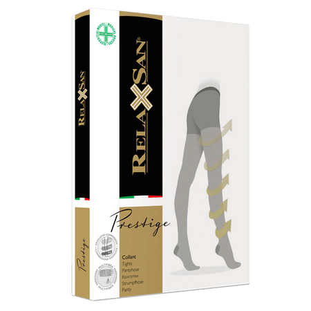 Колготки Relaxsan Prestige 140 den New (арт. 880F) — с компрессией 18-22 мм. рт. ст., 1 класс. Инновационные компрессионные колготки из нитей двойной обкрутки LYCRA 3D, с мягкой эластичной резинкой, укрепленным мыском и пяткой. Изделия высочайшего качества — матовые, суперэластичные, тонкие и при этом очень прочные. Широкая цветовая гамма порадует своим выбором.Рекомендуются в случае компенсированной хронической недостаточности, при варикозных венах, отечности.Колготки Prestige 140 den производятся из высококачественных материалов методом сетчатого переплетения нитей с двойной оплеткой, что гарантирует длительный срок их использования и гипоаллергенный эффект при контакте с кожными покровами.Цвет: camel (загар), moka (шоколад), black (черный).