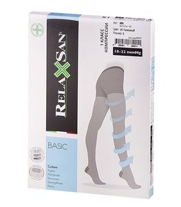 Колготы Relaxsan BASIC 140 den (арт. 880) — с компрессией 18-22 мм. рт. ст., 1 класс. Компрессионные колготки прозрачные с мягкой эластичной резинкой, укрепленным мыском и пяткой, ластовицей с хлопком. В 5 размере изделие с двумя швами, без ластовицы и с расширенными бедрами. Анатомическая форма обеспечивает удобство и хорошую фиксацию изделия.Рекомендуются в случае компенсированной хронической недостаточности, при варикозных венах, отечности.Колготки BASIC 140 den производятся из высококачественных материалов методом сетчатого переплетения нитей с двойной оплеткой, что гарантирует длительный срок их использования и гипоаллергенный эффект при контакте с кожными покровами.