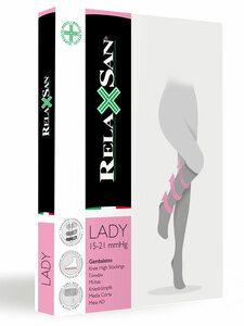 Гольфы Relaxsan LADY (арт. 950A) – с компрессией 15-21 мм. рт. ст., 1 класс. Компрессионные гольфы полупрозрачные с мягкой эластичной резинкой, укрепленным мыском и пяткой, с массажной стелькой. С матирующим эффектом, позволяют скрыть сосудистую сеточку. Анатомическая форма обеспечивает удобство и хорошую фиксацию изделия.Рекомендуются в случае компенсированной хронической недостаточности, при варикозных венах, отечности. • изделия с повышенной прочностью, • полупрозрачные, с матирующим эффектом, позволяют скрыть сосудистую сеточку, • с массажной стелькой, оказывающей воздействие на биоактивные точки стопы, • имеют выраженный лечебный и профилактический эффект при варикозной болезни.Компрессионные гольфы LADY K1 производятся из высококачественных материалов, что гарантирует длительный срок их использования и гипоаллергенный эффект при контакте с кожей.