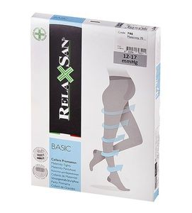 Колготы для беременных Relaxsan BASIC 70 den (арт. 790) — с легкой компрессией 12-17 мм. рт. ст. Компрессионные колготки прозрачные, с эластичной дышащей вставкой, регулируемым поясом, укрепленным мыском и пяткой, уплотненной стопой. Изделия можно использовать на протяжении всей беременности, т. к. они имеют растягивающуюся сетчатую вставку на животе и регулируемый пояс с фиксатором, меняющий объем изделия на талии.Рекомендуются для профилактики варикозного расширения вен, улучшают кровообращение в ногах, снимают усталость и отечность.Колготки Relaxsan BASIC 70 den разработаны специально для беременных женщин с регулируемым поясом, производятся из высококачественных материалов методом сетчатого переплетения нитей с двойной оплеткой, что гарантирует длительный срок их использования и гипоаллергенный эффект при контакте с кожными покровами.