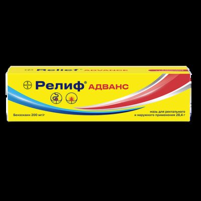 ПоказанияВ качестве местного обезболивающего средства:геморрой;трещины заднего прохода;после проктологических операций;при проведении диагностических манипуляций.Фармакологическое действиеБензокаин оказывает местноанестезирующее действие, не оказывает резорбтивного действия.Лекарственное взаимодействиеЛекарственное взаимодействие препарата Релиф® Адванс не описано.