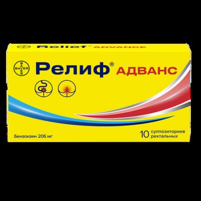 Показания Данные о фармакокинетике препарата Релиф® Адванс не предоставлены. Фармакологическое действие Бензокаин — местный анестетик, не оказывает резорбтивного действия. Основа суппозиториев — масло какао — оказывает смягчающее действие. Лекарственное взаимодействие Лекарственное взаимодействие препарата Релиф® Адванс не описано.