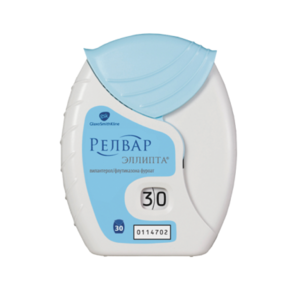 Главная » Аптека Релвар Эллипта Порошок для ингаляций 22 мкг + 92 мкг/доза 30 доз Просмотров 3 Порошок для ингаляций Релвар Эллипта — средство для лечения бронхиальной астмы. GlaxoSmith Kline