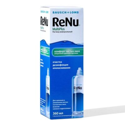 ReNu® -бренд №1 среди растворов для линз!* Чистота Ваших линз – комфорт для Ваших глаз! • Уничтожает более 99,9% патогенных микроорганизмов¹ • Включает HYDRANATE® для удаления протеинов² • Содержит увлажняющий компонент полоксамин² Ссылки: *ReNu® — бренд №1 среди растворов для линз по объему продаж в оптовых ценах и упаковках за 2018-2023 гг. в России по данным аналитической компании ООО «АЛЬФАРМ» www.alpharm.ru. 1. Сиддикуи Р., Лакханди С., Хан Н. А. Оценка эффективности растворов для контактных линз против патогенов, вызывающих кератит //Контактные линзы и передний отрезок глаза (Великобритания). – 2015. – Т. 38. – №. 1. – С. 34–38. (Исследование основано на стандарте ГОСТ Р ИСО 14729 — 2010 / ISO 14729:2001 в отношении P. aeruginosa, S. marcescens, S.aureus, MRSA, F. solani.) 2. Инструкция по применению к раствору универсальному ReNu ® MultiPlus (РеНю МультиПлюс)