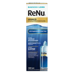Раствор ReNu Advanced — Бренд №1 среди растворов для линз!Усиленный раствор ReNu® Advanced — больше чем просто очищение.Сочетание трех дезинфектантов и двух поверхностно-активных веществ обеспечивает качественную дезинфекцию и очистку линз, а также способствует комфорту при ношении контактных линз в течение всего дня Система тройной дезинфекцииЕдинственный раствор с тремя дезинфектантами. Уничтожает более 99,9% патогенных микроорганизмов Усиленное очищениеДва поверхностно-активных вещества разрыхляют, мягко очищают и удаляют скопления механических загрязнений и отложений с мягких контактных линз Способствует комфорту весь деньУвлажняющий компонент в составе способствует комфортному ношению контактных линз в течение 20 часов