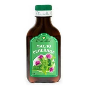 Репейное масло — масло из корней лопуха большого (репейника) — незаменимое и очень эффективное средство для ухода за волосами, которое используется в народной медицине с незапамятных времен.Репейное масло содержит природный инулин, протеин, эфирные и жирные масла (пальмитиновую и стеариновую кислоты), дубильные вещества, минеральные соли и витамины.Репейное масло усиливает капиллярное кровообращение и восстанавливает обмен веществ в коже головы, эффективно питает и укрепляет корни и структуру волос, ускоряет их рост, останавливает выпадение волос, избавляет от перхоти, зуда и сухости кожи головы (антисеборейное и противомикробное действие), восстанавливает слабую и поврежденную структуру волос (после окраски и химической завивки).После его применения волосы становятся густыми, пушистыми и блестящими. Масло репейное с крапивой изготовлено на основе экстракта корней лопуха и крапивы двудомной. Обогащено дополнительным комплексом витаминов, в том числе витамином К, каротиноидами, фито- и ситостеринами, а главное — хлорофиллом, который, аналогично своему действию в растениях, является важным строительным материалом и питательным веществом для корней волос, способствуя их укреплению и усилению роста.