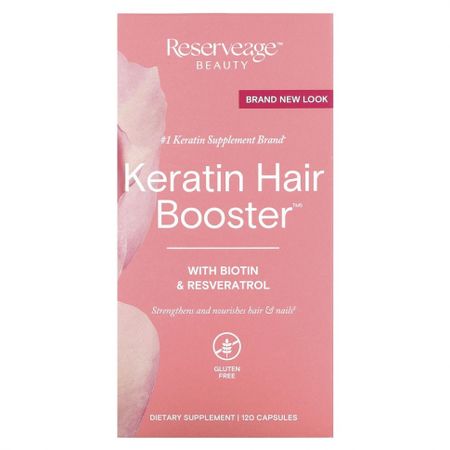 ReserveAge Nutrition, Keratin Hair Booster с биотином и ресвератролом, 120 капсул