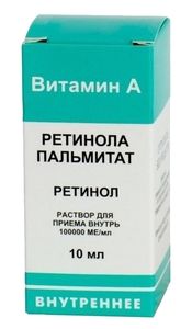 Показания к применениюГиповитаминоз, авитаминоз А. В комплексной терапии:- инфекционно-воспалительных заболеваний (корь, дизентерия, грипп, трахеиты, бронхиты и Т.Д.),- поражений и заболеваний кожи (трещины, ихтиозиформные эритродермии, угревая сыпь, гиперкератоз, себорейный дерматит, псориаз, нейродермит, некоторые формы экземы, туберкулез кожи),- заболеваний глаз (пигментный ретинит, гемералопия, ксерофтальмия, кератомаляция, экзематозные поражения век),- желудочно-кишечных заболеваний (эрозивного гастродуоденита, язвенной болезни желудка и двенадцатиперстной кишки),- цирроза печени.Назначают для профилактики образования конкрементов в желчных и мочевыводящих путях.ПротивопоказанияПовышенная чувствительность к компонентам препарата, гипервитаминоз А, беременность, желчнокаменная болезнь, хронический панкреатит, острые воспалительные заболевания кожи.С осторожностью:Применять при нефрите, сердечной недостаточности II-III ст., алкоголизм, вирусный гепатит, почечная недостаточность, пожилой возраст, детский возраст.Беременность и лактация:Не рекомендуется прием препарата в период беременности и грудного вскармливания.Побочное действиеУ некоторых пациентов при длительном приеме наблюдаются сухость кожи и слизистых оболочек, повышенная чувствительность кожи лица, заеды. Указанные явления проходят самостоятельно при снижении дозы или временной отмене препарата.При лечении угрей через 7-10 дней приема наблюдается обострение местной воспалительной реакции, которое не требует дополнительного лечения и в дальнейшем прекращается. В отдельных случаях отмечается непереносимость препарата, что требует его отмены.СоставДействующее вещество: ретинола пальмитат (витамин А)(в пересчете на 100% ретинола пальмитата) — 55,1 г (состав на 1,0 г субстанции: ретинола пальмитат -1,7млн ME, бутилгидроксианизол — 9 мг, бутилгидрокситолуол — 9 мг илиретинола пальмитат -1,7 млн ME, бутилгидрокситолуол -17 мг, подсолнечное масло до 1,0 г).Вспомогательные вещества: бутилгидрокситолуол — 1,0 г, бутилгидроксианизол — 1,0 г, масло рапсовое до 1 л.В 1 мл раствора содержится около 100 000 ME ретинола пальмитата (1 капля препарата из капельницы или глазной пипетки содержит ретинола пальмитата около 3 300 ME). 1 мг ретинола пальмитата соответствует 1817 ME.