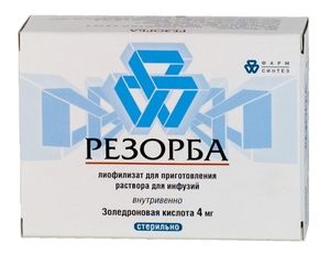 Показания к применению остеолитические, остеобластические и смешанные костные метастазы солидных опухолей; остеолитические очаги при множественной миеломе; гиперкальциемия, вызванная злокачественной опухолью.ПротивопоказанияПовышенная чувствительность к золедроновой кислоте, другим бисфосфонатам или любым другим компонентам, входящим в состав препарата.Выраженная почечная недостаточность (клиренс креатинина < 30 мл/мин).Беременность и период кормления грудью.Детский и подростковый возраст (безопасность и эффективность применения не установлены).С осторожностью: при нарушении функции почек, выраженной печеночной недостаточностью (нет данных по применению), у пациентов с бронхиальной астмой, чувствительных к ацетилсалициловой кислоте.Состав1 фл.:- золедроновой кислоты моногидрат 4.26 мг, что соотв. содержанию золедроновой кислоты безводной 4 мгВспомогательные вещества: D-маннитол — 220 мг, натрия цитрат двухводный — 27.34 мг (в пересчете на натрия цитрат безводный — 24 мг).Растворитель в ампуле: вода д/и — 5 мл.Растворитель в контейнере: натрия хлорид раствор для инфузий 0.9% — 100 мл.Взаимодействие с другими препаратамиВ качестве растворителей нельзя использовать растворы, содержащие кальций, в частности раствор Рингера.При одновременном применении с противоопухолевыми лекарственными средствами, диуретиками, антибиотиками, анальгетиками клинически значимых взаимодействий не отмечено.Бисфосфонаты и аминогликозиды оказывают однонаправленное влияние на концентрацию кальция в сыворотке крови, поэтому при их одновременном назначении повышается риск развития гипокальциемии и гипомагниемии.Осторожность необходима при одновременном применении золедроновой кислоты с препаратами, потенциально обладающими нефротоксическим действием.У пациентов с множественной миеломой возможно повышение риска развития нарушений функции почек при внутривенном введении бисфосфонатов в комбинации с талидомидом.Препарат не следует смешивать с другими лекарственными средствами.