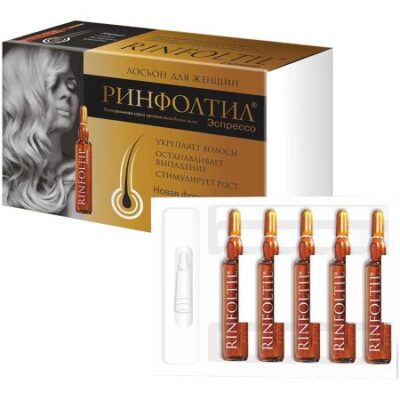 Показания к применению: Выбирайте Ринфолтил Эспрессо с кофеином, если: — Вы хотите затормозить процесс потери волос;- Вы заметили у себя первые признаки алопеции; — Вы заметили первые признаки и симптомы выпадения волос; — Вы заметили, что волосы на голове начали «редеть»;- Вы отращиваете волосы и хотите ускорить их рост;- Вы хотите укрепить волосы; — Ваши волосы склонны к жирности, перхоти; — Вы не знаете причину выпадения волос и ищете универсальное средство. Новый Ринфолтил® Эспрессо, как и прежде,содержит экстракт плодов карликовой пальмы Serenoa repens. Но теперь в его состав добавлен кофеин – мощный стимулятор роста волос. Влияние кофеина на рост волос проявляется вне зависимости от предрасположенности к выпадению или облысению. теперь он будет эффективен, если выпадение волос не связано с андрогенной алопецией. И даже если ваши волосы здоровы, лосьон в ампулах Ринфолтил® Эспрессо сделает их еще крепче. В случае, если у пациента идет процесс потери волос, эффект от кофеина может не просто приостановить его, а перекрыть, т.е. вызвать укрепление ранее умирающих волосяных фолликулов. Дозировка кофеина в новых ампулах способна вернуть к активному росту даже волосы запрограммированные природой на умирание. Примечательно, что кофеин влияет на волосы только при наружном нанесении и не проявляет никакой активности при приеме внутрь. Возможно поэтому человечество не пришло к этому открытию раньше. Ампулы Ринфолтил Эспрессо имеют два различных состава (формы выпуска): для мужчин и для женщин, созданных с учетым специфики потери волос у разных полов.