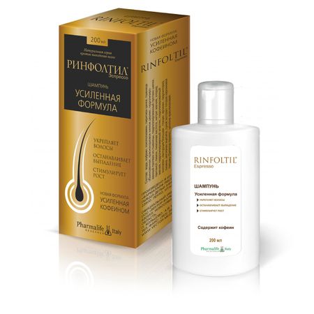 Показания к применению: Используется как дополнение к лечению волос ампулами Ринфолтил Эспрессо, подготавливает кожу головы к нанесению раствора. Шампуни Ринфолтил Эспрессо, как и прежде, содержат доказавший свою эффективность экстракт карликовой пальмы. Но теперь в состав входит кофеин — мощный природный стимулятор роста волос. Два этих основных компонента направлены на борьбу с выпадением волос, но имеют совершенно разный механизм действия. Это наделяет шампуни Ринфолтил Эспрессо непревзойденной эффективность. Кроме того, наличие кофеина расширяет область применения нового Ринфолтила – теперь он будет эффективен, даже если выпадение волос не связано с андрогенетической алопецией. И даже если ваши волосы абсолютно здоровы, Ринфолтил Эспрессо сделает их еще крепче.