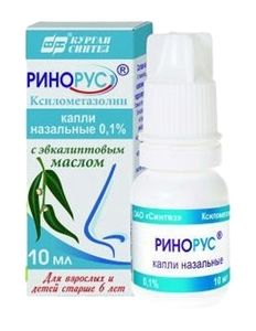 Показания к применениюОстрый ринит (в т.ч. на фоне острых респираторных заболеваний и аллергический ринит) . синусит . евстахиит . средний отит (в составе комбинированной терапии для уменьшения отека слизистой оболочки носоглотки) . для облегчения проведения риноскопии . подготовка больных к диагностическим манипуляциям в носовых ходах.Применение при беременности и кормлении грудьюПрепарат Ринорус . в форме капель назальных противопоказан к применению при беременности. Препарат Ринорус . в форме спрея назального при беременности следует применять только после тщательной оценки соотношения пользы для матери и риска для плода, не допускается превышение рекомендуемых доз. В период грудного вскармливания препарат следует назначать с осторожностью.ПротивопоказанияАртериальная гипертензия . тахикардия . выраженный атеросклероз . глаукома . атрофический ринит . гипертиреоз . хирургические вмешательства на мозговых оболочках (в анамнезе) . беременность (для капель назальных) . детский возраст до 2 лет . детский возраст до 6 лет (для капель назальных 0.1% и спрея назального 0.1%) . повышенная чувствительность к компонентам препарата (в т.ч. к маслу эвкалиптовому). Не применять при терапии ингибиторами МАО и трициклическими антидепрессантами, а также с другими препаратами, повышающими АД.Побочное действиеМестные реакции: при частом и/или длительном применении — раздражение и/или сухость слизистой оболочки носоглотки, жжение, парестезии, чиханье, гиперсекреция . редко — отек слизистой оболочки носа. Системные реакции: рвота, головная боль, сердцебиение, повышение АД, бессонница, нарушение зрения, депрессия (при длительном применении высоких доз).СоставВ 1 мл.,жидкости: ксилометазолина гидрохлорид 1млг. Вспомогательные вещества: бензалкония хлорид — 0.1 мг, натрия хлорид — 5 мг, динатрия эдетат — 0.5 мг, натрия дигидрофосфата дигидрат — 6 мг, натрия гидрофосфата додекагидрат — 3.5 мг, масло эвкалиптовое — 0.85 мг, вода д/и — до 1 мл.