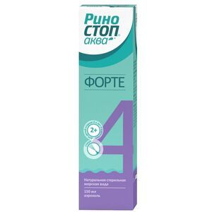РИНОСТОП АКВА* Форте. Для детей с 2 лет и взрослых.Вид распыления — струя.Средство для промывания и орошения полости носа, 150 мл.Состав: гипертоническая натуральная стерильная морская вода с содержанием NaCl 21 г/л.Риностоп Аква* Форте — это средство, разработанное специально для применения при сильной заложенности носа, гипертоническая концентрация морской воды обеспечивает уменьшение отека слизистой оболочки полости носа благодаря удалению избыточной жидкости из полости носа.Средство для промывания и орошения полости носа для детей и взрослых бесцветная жидкость без запаха.Гипертоническая натуральная стерильная морская вода с содержанием натрия хлорида (NaCl) 21 г/л.Содержит все активные вещества и микроэлементы морской воды:K и Cu – способствуют регенерации поврежденных клеток слизистой оболочки носа.Ca, Mg и S – принимают участие в регуляции частоты сокращений ресничек мерцательного эпителия дыхательных путей, благодаря чему со слизистой оболочки носа удаляются вредоносные микроорганизмы и продукты их распада.Ca дополнительно обладает противоаллергическим действием.Zn и Se – способствуют повышению местного иммунного ответа, обеспечивают защиту клеток слизистой оболочки дыхательных путей от апоптоза.Cl – принимает участие в регулировании рН и объема клеток, ответственен за трансэпителиальный перенос солей и воды и стабилизацию мембранного потенциала в соединении с Na снижает выработку и высвобождение ИЛ-8 респираторным эпителием, обеспечивая противовоспалительный эффект Средства.I – способствует нормализации выработки назальной слизи и обеспечивает Средству антисептический эффект.Fe – транспортирует кислород к тканям: входит в состав гемоглобина и отвечает за дыхательные процессы на клеточном уровне.Средство не содержит консервантов.