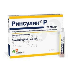 Главная » Аптека Ринсулин Р Раствор для инъекций 100 МЕ/мл 5 шт Просмотров 14 Инсулин человеческий короткого действия Герофарм