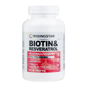 Комплекс для поддержания гормонального фона и здоровья женщины включает 10 необходимых компонентов в биодоступной форме. Обладает противовоспалительным и антиоксидантным эффектом, способствует нормализации работы нервной, сердечно сосудистой и эндокринной систем.Благодаря разнообразию полезных витаминов для поддержания здоровья волос, кожи и ногтей, а также продуманному сочетанию растительных компонентов, формула комплекса дает необходимый импульс клеточному метаболизму, помогая более эффективно восстанавливать организм. способствует улучшению здоровья кожи, волос, ногтей, замедляя старение, поддержанию нормального уровня эстрогенов, смягчению проявления предменструального синдрома или при длительном применении контрацептивов, уменьшению риска развития новообразований.Прием 1 капсулы (рекомендуемая суточная доза) обеспечит поступление: витамин А 0,4 мг витамин Е 5,0 мг витамин D3 0,0025 мг витамин В6 1,0 мг витамин В9 0,21 мг витамин Н 0,055 мг эйкозапентаеновая к-та 350 мг докозагексаеновая к-та 230 мг глицирризиновая к-та 2.5 мг ресвератрол 7.5 мгПищевая ценность на 100 грамм продукта: белки- 15г, жиры — 70г, углеводы — 6.5г.Энергетическая ценность на 100 грамм продукта: 3100 кДж / 740 ккал.