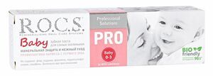 Зубная паста R.O.C.S. PRO Baby предназначена для ухода за зубами малышей, начиная с самого раннего возраста, — от 0 до 3-х лет.Приготовлена на очень мягкой основе, которая, с одной стороны, обеспечивает качественную очистку зубов, а, с другой стороны, не травмирует тонкую эмаль молочных зубов.Содержит 98,5% ингредиентов натурального происхождения Обладает реминерализующими свойствами. Укрепляет зубы* Защищает от кариеса* Подавляет кариесогенные бактерии* Защищает десну от воспаления Способствует нормализации микробного баланса в полости рта* Благодаря противомикробным свойствам экстрактов данный продукт не требует применения сильных консервантов и особых условий храненияГипоалергенна*Подтверждено клиническими исследованиями.Свойства компонентов Ксилит защищает от бактерий, вызывающих кариес. Кальций укрепляет эмаль, возвращает ей естественную белизну. Натуральный экстракт обладает противомикробными и противовоспалительными свойствами. Биодоступное соединение кальция, фосфора и магния укрепляют эмаль и интенсивно насыщают ее минералами.
