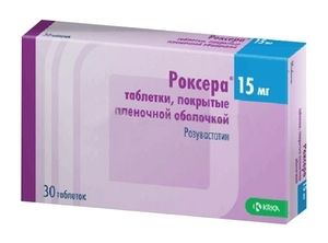 Показания к применению- первичная гиперхолестеринемия (тип IIа по Фредриксону) или смешанная дислипидемия (тип IIb по Фредриксону) в качестве дополнения к диете при неэффективности диеты и других немедикаментозных методов лечения (например, физических нагрузок, снижения массы тела);- семейная гомозиготная гиперхолестеринемия как дополнение к диете и другой гиполипидемической терапии (например, ЛПНП-аферез) или если такая терапия не эффективна;- гипертриглицеридемия (тип IV по Фредриксону) как дополнение к диете;- для замедления прогрессирования атеросклероза в качестве дополнения к диете у пациентов, которым показана терапия для снижения плазменной концентрации Хс и Хс-ЛПНП;- первичная профилактика основных сердечно-сосудистых осложнений (инсульта, инфаркта миокарда, артериальной реваскуляризации) у взрослых пациентов без клинических признаков ИБС, но с повышенным риском ее развития (возраст старше 50 лет для мужчин и старше 60 лет для женщин, повышенная плазменная концентрация С-реактивного белка (≥2 г/л) при наличии как минимум одного из дополнительных факторов риска, таких как артериальная гипертензия, низкая плазменная концентрация Хс-ЛПВП, курение, раннее начало ИБС в семейном анамнезе).СоставРозувастатин кальция 15.62 мг, что соответствует содержанию розувастатина 15 мгвспомогательные вещества: целлюлоза микрокристаллическая — 134.81 мг, лактоза — 60 мг, кросповидон — 11.25 мг, кремния диоксид коллоидный — 0.5 мг, магния стеарат — 2.82 мг.состав пленочной оболочки: бутилметакрилата, диметиламиноэтилметакрилата и метилметакрилата сополимер (1:2:1) — 1.65 мг, макрогол 6000 — 1.35 мг, титана диоксид — 0.75 мг, лактозы моногидрат — 3 мг.