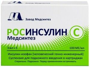 Росинсулин С Суспензия для подкожного введения 100 МЕ/мл 5 мл 5 шт