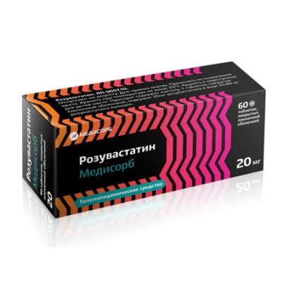 Главная » Аптека Розувастатин Медисорб 20 мг, 60 шт, таблетки покрытые пленочной оболочкой Просмотров 6 Медисорб АО