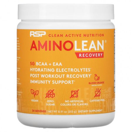 ** Суточная норма не определена. Чистое активное питание5 г BCAA + EAAУвлажняющие электролитыВосстановление после тренировкиПоддержка иммунитетаНатуральные ароматизаторыВеганскийБез сахараБез искусственных красителей и ароматизаторовБез кофеинаПищевая добавкаRSP был создан, чтобы помочь людям достичь своих целей в области здоровья и фитнеса. Мы живем, чтобы сотрудничать с вами в достижении этих целей. Мы знаем, что это может быть непросто, как для занятого профессионала, пробующего новую фитнес-программу, так и для профессионального спортсмена. Наша миссия — создавать питательные продукты, которые сделают ваше путешествие полезным и приятным, не предлагая вам выбирать между качеством и удобством. Так что поставьте себе цель, зарядитесь энергией, побейте личный рекорд, восстановитесь и повторите. Мы поддержим вас на каждом этапе этого пути.BCAA & EAA для восстановления мышцАминокислоты играют решающую роль в поддержке процесса восстановления и помогают максимизировать синтез мышечного белка. AminoLean Recovery содержит не только BCAA в соотношении 2: 1: 1, но и все 9 незаменимых аминокислот для поддержки всего процесса восстановления.Поддержка иммунитетаКаждая порция AminoLean Recovery содержит идеальный баланс витаминов, минералов и функциональных грибов для поддержки сильной иммунной системы, включая 556% суточной нормы витамина С и 100% суточной потребности в витамине D и цинке.Быстрое увлажнениеПравильная гидратация имеет решающее значение для повышения производительности и восстановления. AminoLean Recovery разработан для поддержания оптимальной гидратации, предоставляя широкий спектр ключевых электролитов и минералов, полученных естественным путем из чистейших морских вод Северной Атлантики.