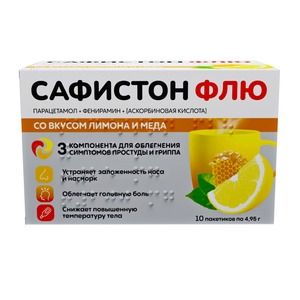 Содержимое пакетика для порошков [со вкусом лимона], [со вкусом лимона и меда], [со вкусом малины], [со вкусом черной смородины] — смесь порошка и гранул белого или белого с желтоватым оттенком цвета с характерным запахом. Допускается наличие вкраплений от бледно-желтого до светло-коричневого цвета.
