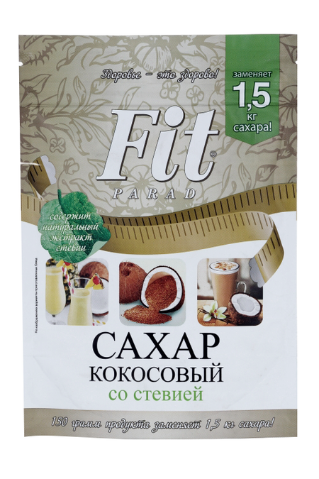 Сахар FitParad со стевией кокосовый, 150 г, дой-пак