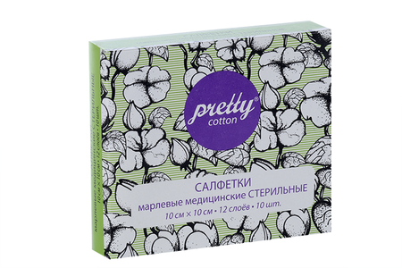 Салфетки стер марл 10х10 Претти Коттон, 10 шт, инд уп