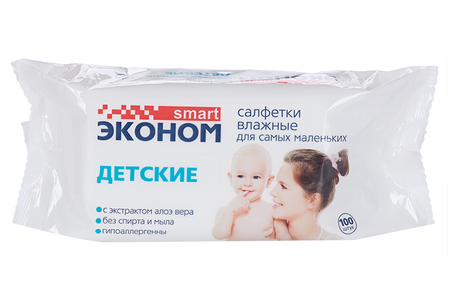 Салфетки влаж Эконом Смарт дет с экстр алоэ вера, 100 шт