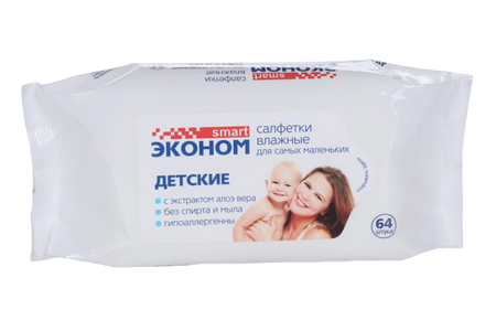 Салфетки влаж Эконом Смарт дет с экстр алоэ вера, 64 шт