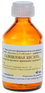 Главная » Аптека Салициловая кислота Раствор для наружного применения спиртовой 1% 40 мл Просмотров 8 Бесцветная прозрачная жидкость с запахом спирта. Ярославская ФФ