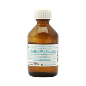 Показания к применениюМонотерапия и в составе комбинированных препаратов при воспалительных, инфекционных и других поражениях кожи, в т. ч. ожоги, псориаз, экзема, дискератоз, ихтиоз, обыкновенные угри, бородавки, гиперкератоз, мозоли, омозолелость, жирная себорея, отрубевидный лишай; выпадение волос; потливость ног.ПротивопоказанияГиперчувствительность, почечная недостаточность, младенческий возраст.Побочное действиеМестное раздражение (зуд, жжение в месте нанесения), аллергические реакции.СоставДействующее вещество: Салициловая кислота 0,4 млВзаимодействие с другими препаратамиФармацевтически несовместима с резорцином (образует расплавляющиеся смеси) и цинка оксидом (образует нерастворимый цинка салицилат).
