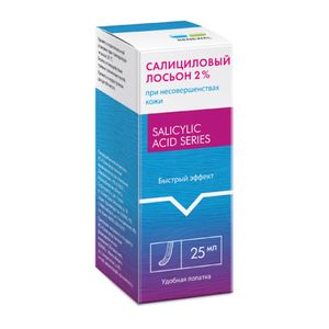 Салициловый лосьон 2 % — косметическое средство для ухода за кожей, склонной к высыпаниям и покраснениям.Внешний вид: прозрачная бесцветная жидкость со спиртовым запахом.Салициловый лосьон благотворно влияет на проблемные участки кожи благодаря антибактериальному, подсушивающему эффекту. Средство глубоко проникает в поры, отшелушивая клетки, освобождает протоки сальных желез, облегчая выделение кожного жира, что способствует сокращению размера пор. Предупреждает появление черных точек, уменьшает дискомфорт при появлении высыпаний. Способствует процессу обновления кожи, сокращает следы постакне, выравнивает тон и рельеф кожи.Салициловый лосьон при регулярном применении: борется с несовершенствами кожи и предотвращает их появление, уменьшает покраснения, бережно отшелушивает омертвевшие клетки, очищает и сужает поры, способствует нормализации работы сальных желез, устраняет жирный блеск, способствует восстановлению здорового цвета кожи.