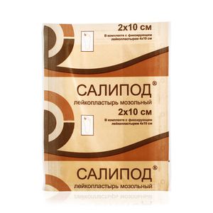 Салипод — это полоска ткани со слоем мозольной массы, приклеенная к липкой основе — лейкопластырю, прямоугольной, фигурной или круглой формы или полоска ткани со слоем мозольной массы прямоугольной, фигурной или круглой формы в комплекте с лейкопластырем или без него с защитным покрытием.Технические характеристики:На поверхности Салипода лейкопластыря мозольного не должно быть пятен, загрязнений и складок.Количественное содержание салициловой кислоты в мозольной массе должно быть от 30 до 35 %.Сопротивление отслаиванию липкой основы — Лейкопластыря Верофарм или Лейкопластыря «Унипласт фиксирующий» должно быть не менее 0,35 Н/см (для Лейкопластыря Верофарм) или не менее 0,50 Н/см (для Лейкопластыря «Унипласт фиксирующий»).Салипод лейкопластырь мозольный (ткань с мозольной массой) должен обладать микробиологической чистотой. В 1 г допускается не более: 104 аэробных бактерий, 102 дрожжевых и плесневых грибов. Бактерий семейства Enterоbacteriaceae, Pseudomonas aeruginosa, Staphylococcus aureus — не допускается.Описание принципа действия:За счет компонентов, входящих в состав мозольной массы, Салипод лейкопластырь мозольный оказывает кератолитическое действие.Область применения:Десмургия.Условия применения:В стационарных и амбулаторных лечебно-профилактических медицинских учреждениях и в домашних условиях.