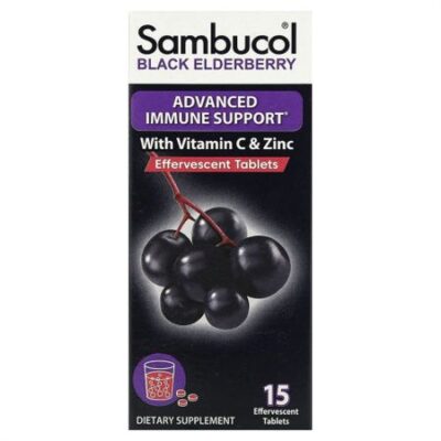 Пищевая ценностьРазмер порции: 1 таблеткаПорций в упаковке: 15 Количество в 1 порции% от суточной нормыВитамин C (в виде аскорбиновой кислоты)60 мг100%Цинк (в виде моногидрата сульфата цинка)7,5 мг50%Сок черной бузины (в виде экстракта)150 мㆆ Суточная норма не определена. Помогает поддерживать иммунную системуВысокий уровень антиоксидантовПриятный вкусНе содержит сахараБез искусственных ароматизаторовПродукт прошел научные испытанияПищевая добавкаПодходит для вегетарианцев и вегановПодходит для детей от 4 летНе содержит глютена, дрожжей, яиц и лактозыБез консервантовЧерная бузина содержит одни из самых мощных природных антиоксидантов. Может использоваться в течение года для поддержки иммунной системы.Оригинальный экстракт черной бузины Sambucol® обеспечивает мощную поддержку иммунной системы, что поможет вам и вашей семье оставаться здоровыми в течение всего года. Экстракт черной бузины Sambucol® предоставляет вам одно из мощнейших природных средств защиты.Компании Sambucol® доверяют миллионы людей по всему миру. Эти шипучие таблетки с насыщенным вкусом ? удобный способ поддержки иммунной системы.Sambucol® разработан всемирно известным вирусологом и представляет собой уникальный экстракт черной бузины, который использовался в научных исследованиях. Sambucol® использует запатентованный метод получения экстракта, что гарантирует качество каждой порции и стабильную поддержку иммунитета.Принимайте Sambucol® ежедневно для постоянной поддержки иммунной системы.
