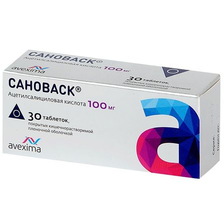 Фармакологическое действие НПВС, антиагрегантное средство. В основе механизма действия ацетилсалициловой кислоты лежит необратимое ингибирование фермента ЦОГ-1, в результате чего блокируется синтез тромбоксана А2 и подавляется агрегация тромбоцитов. Считается, что ацетилсалициловая кислота имеет и другие механизмы подавления агрегации тромбоцитов, что расширяет область ее применения при различных сосудистых заболеваниях. Ацетилсалициловая кислота в более высоких дозах обладает также противовоспалительным, анальгезирующим и жаропонижающим действием. Показания активных веществ препарата Сановаск® Нестабильная стенокардия и стабильная стенокардия; профилактика повторного инфаркта миокарда; профилактика повторной транзиторной ишемической атаки и повторного ишемического инсульта у пациентов, ранее перенесших нарушение мозгового кровообращения; профилактика тромботических осложнений после операций и инвазивных вмешательств на сосудах (таких как аортокоронарное шунтирование, эндартерэктомия сонных артерий, артериовенозное шунтирование, ангиопластика и стентирование коронарных артерий, ангиопластика сонных артерий).