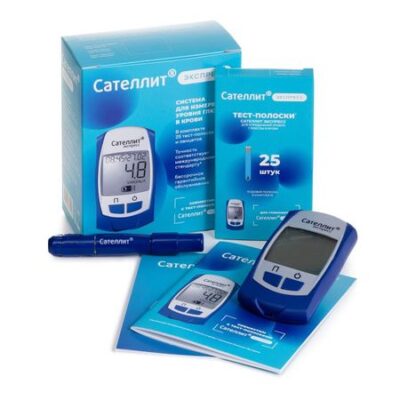 Глюкометр «Сателлит Экспресс» (Портативный измеритель концентрации глюкозы в крови. В комплекте – электрохимическая полоска ПКГ-03 «Сателлит Экспресс» для однократного применения). С помощью глюкометра «Сателлит Экспресс» можно самостоятельно определить содержание глюкозы в капиллярной крови людей. Основные преимущества: простота использования; максимальное удобство; точность показаний; доступная цена тест-полосок. Набор содержит все необходимое для первых 25 измерений, а также полоску «КОНТРОЛЬ» при помощи, которой можно протестировать глюкометр на исправность.