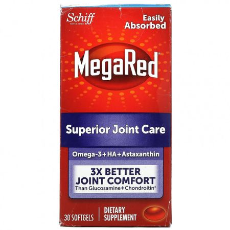 Компания основана в 1936 годуЛегко усваиваетсяВ 3 раза больше комфорта для суставов, чем у глюкозамина + хондроитина ‡Пищевая добавкаДля здоровья, гигиены, домаЭкологически чистые морепродукты, сертифицированные MSCSuperbaГарантия качества Schiff®Гарантированная чистота, свежесть и заявленная эффективностьMegaRed® Superior Joint Care помогает успокоить суставы, помогая вам заниматься любимым делом ‡.Клиническое исследование на людях показало, что всего одна небольшая капсула MegaRed Superior Joint Care, которую легко глотать в день, успокаивает ваши суставы. В 3 раза лучше, чем глюкозамин + хондроитин [G / C] ‡.MegaRed Superior Joint Care содержит уникальную запатентованную формулу, которая сочетает в себе мощное омега-3 масло криля, гиалуроновую кислоту — питательное вещество, которое естественным образом присутствует в вашем организме и помогает смазывать и смягчает ваши суставы, а также мощный антиоксидант астаксантин, который способствует общему здоровью ваши суставы.В MegaRed Superior Joint Care используется на 100% чистый антарктический криль, крошечные ракообразные, которые обитают в чистых водах Антарктики. Масло криля MegaRed содержит уникальное сочетание омега-3 жирных кислот, фосфолипидов и мощного антиоксиданта астаксантина для комфорта суставов.Экологичный продукт. Криль — один из самых распространенных и экологичных организмов на Земле. Мировой вылов криля не превышает строгих международных рекомендаций по вылову. MegaRed® идет еще дальше, закупая криль только в Антарктике, где он наиболее популярен. Это помогает экосистеме поддерживать здоровую и устойчивую популяцию криля.Этот продукт получен от рыбопромыслового хозяйства, прошедшего независимую сертификацию по стандарту MSC по рациональному и экологичному рыболовству.Гелевые капсулы Schiff® Sure Dissolve растворяются в течение одного часа.‡ На основе 56-дневного клинического исследования на людях средство MegaRed Superior Joint Care значительно улучшило комфорт суставов в 3 раза по сравнению с глюкозамином и хондроитином.