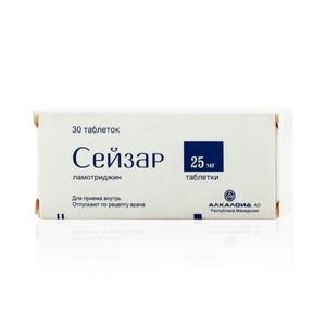 Показания к применениюПарциальные и генерализованные тонико-клонические судорожные припадки (чаще в случаях резистентности к лечению другими противосудорожными средствами).Применение при беременности и кормлении грудьюКлинические данные о безопасности применения ламотриджина при беременности и в период лактации недостаточны.;При решении необходимости применения при беременности следует сопоставить ожидаемую пользу терапии для матери и потенциальный риск для плода.;Предварительные данные показывают, что ламотриджин проникает в грудное молоко в концентрации, составляющей 40-45% от концентрации в плазме. У небольшого числа грудных детей, матери которых получали ламотриджин, не отмечено побочного действия.ПротивопоказанияТяжелые нарушения функции печени, повышенная чувствительность к ламотриджину.Побочное действиеСо стороны ЦНС: головная боль, головокружение, сонливость, нарушения сна, чувство усталости, агрессивность, спутанность сознания.;Со стороны пищеварительной системы: тошнота, нарушения функции печени.;Со стороны системы кроветворения: лейкопения, тромбоцитопения.;Аллергические реакции: кожная сыпь (обычно макуло-папулезная), ангионевротический отек, синдром Стивенса-Джонсона, токсический эпидермальный некролиз, лимфаденопатия.СоставЛамотриджин 25 мгВзаимодействие с другими препаратамиПри одновременном применении с противосудорожными средствами — индукторами метаболизма в печени (в т.ч. с фенитоином, карбамазепином, фенобарбиталом, примидоном) ускоряется метаболизм ламотриджина. При одновременном применении ламотриджина и карбамазепина или фенитоина происходит уменьшение T1/2 ламотриджина. Имеются сообщения о головокружении, атаксии, диплопии, нечеткости зрения и тошноте у пациентов, принимающих карбамазепин после начала лечения ламотриджином.;Вследствие ингибирования микросомальных ферментов печени под влиянием вальпроата натрия, при одновременном применении замедляется метаболизм ламотриджина, увеличивается T1/2 ламотриджина.