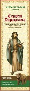 Крем-бальзам для тела Секрет Парацельса — уникальный рецепт прославленного доктора Парацельса. Ещё в XVI веке знаменитый ученый, естествоиспытатель немецкий врач Парацельс широко использовал в своих рецептах желчь в сочетании с эфирными маслами, что позволило ему достичь потрясающих результатов при лечении суставных заболеваний различного происхождения. Эфирные масла и желчь, входящие в состав крема, обладают высокой проникающей способностью, за счет чего оказывают согревающее, раздражающее и отвлекающее действие. Крем-бальзам поможет активизировать вам жизненные силы, восстановит подвижность вашего тела, избавит вас от малоподвижного образа жизни. Применяется в качестве вспомогательного средства при бурситах, тендовагинитах, спондилоартрозах, радикулитах, остеохондрозах, отложении солей, воспалениях сухожилий и других суставных заболеваниях.Крем-бальзам для тела Секрет Парацельса — уникальный рецепт прославленного доктора Парацельса.Ещё в XVI веке знаменитый ученый, естествоиспытатель немецкий врач Парацельс широко использовал в своих рецептах желчь в сочетании с эфирными маслами, что позволило ему достичь потрясающих результатов при лечении суставных заболеваний различного происхождения.Эфирные масла и желчь, входящие в состав крема, обладают высокой проникающей способностью, за счет чего оказывают согревающее, раздражающее и отвлекающее действие.Крем-бальзам поможет активизировать вам жизненные силы, восстановит подвижность вашего тела, избавит вас от малоподвижного образа жизни.