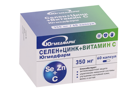 Селен+Цинк+Витамин С Югмедфарм, 350 мг, 60 шт, капсулы